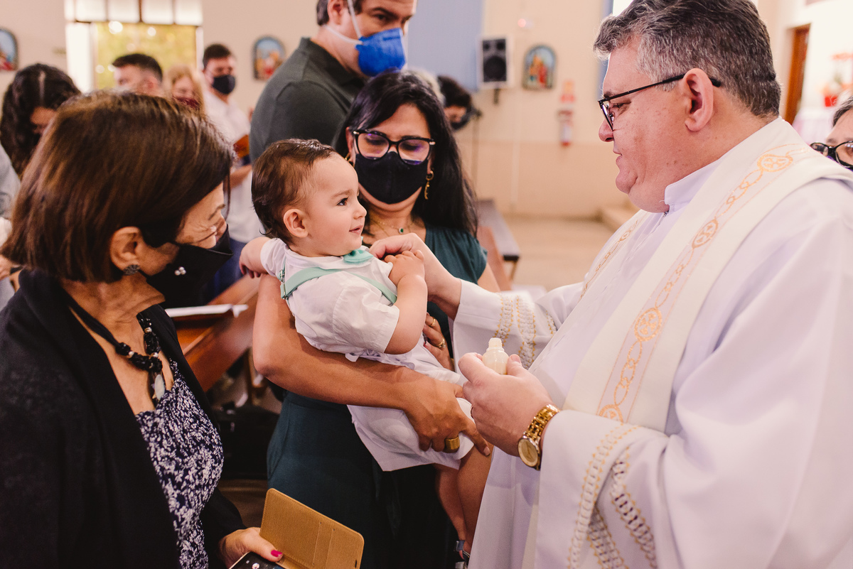 O Ulisses recebeu seu batismo no mesmo dia que também celebrou seu 1° aninho. Dois grandes motivos para comemorar, afinal agora também ele celebra o seu nascimento para a vida cristã.
