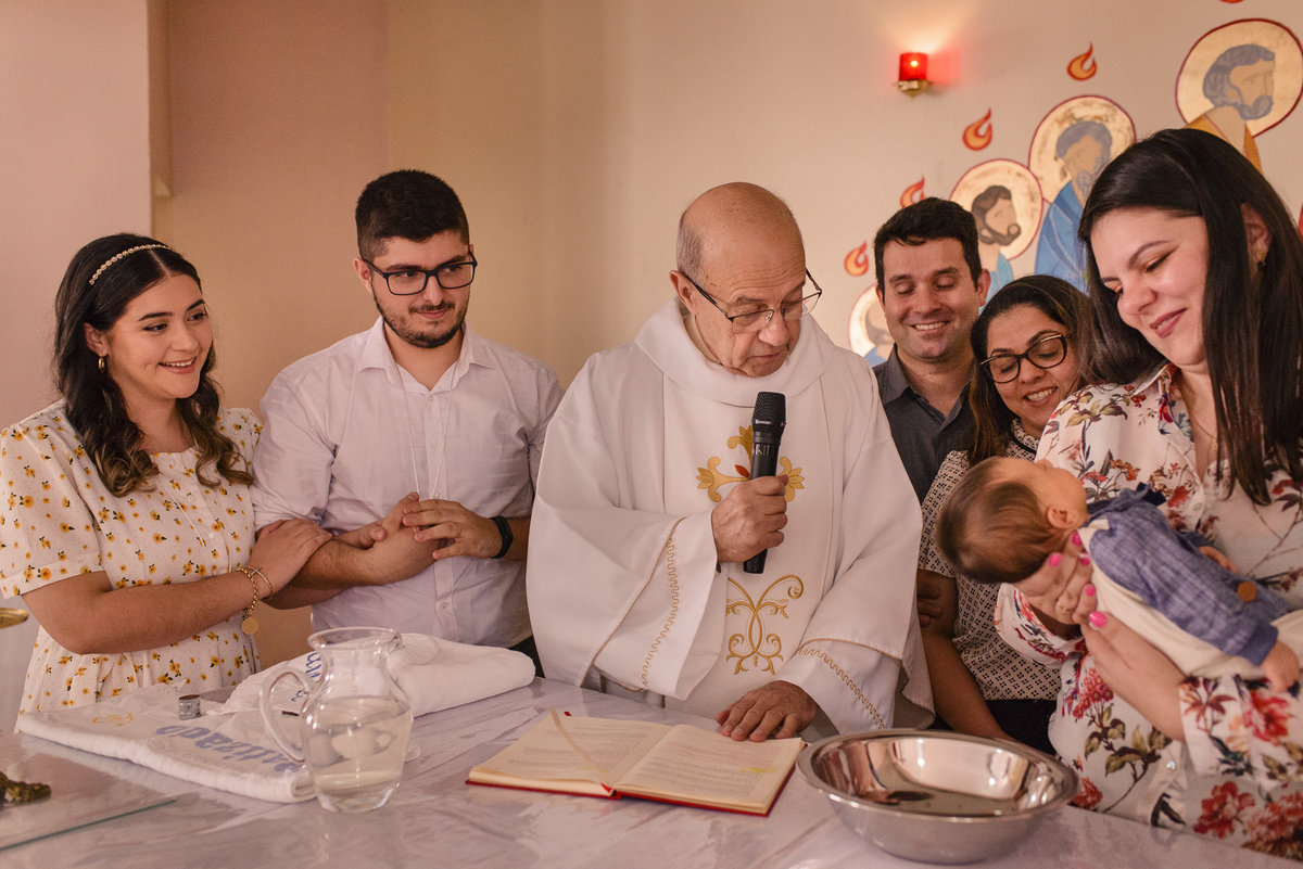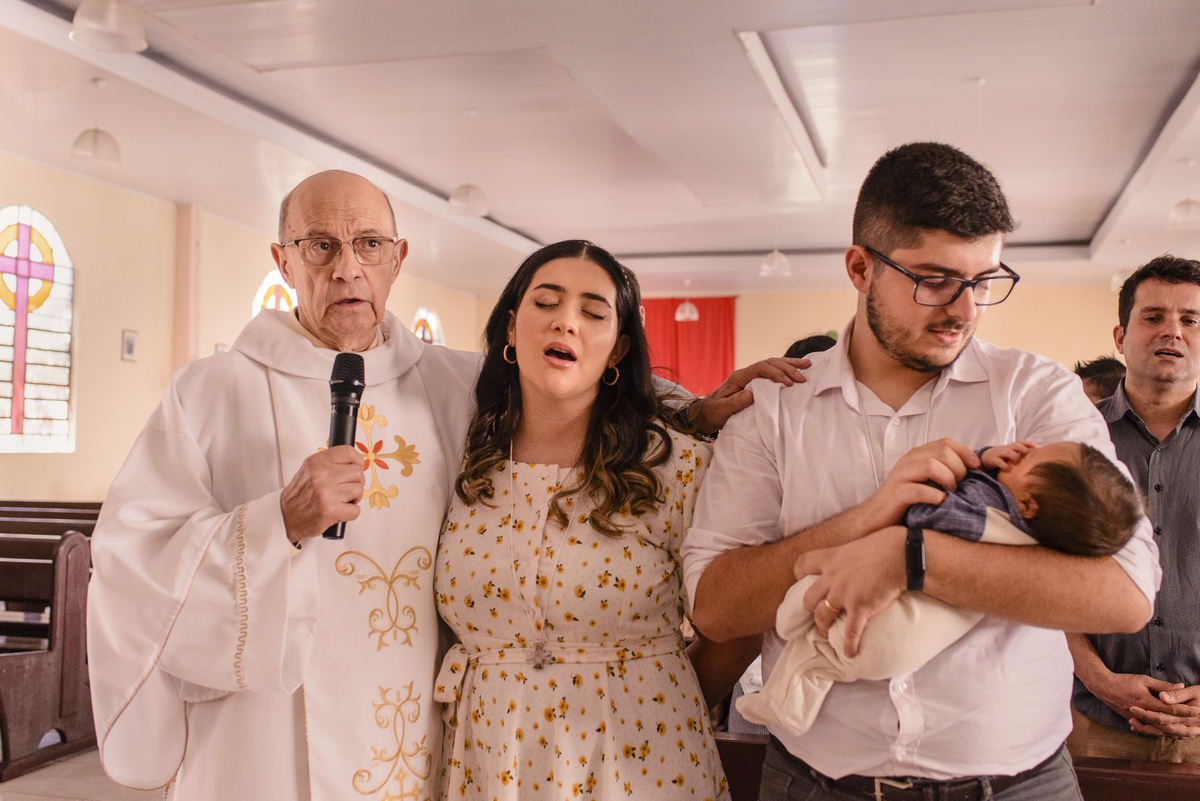 E inúmeros foram os motivos para esse dia ser ainda mais inesquecível. Além dos pais, a Mari e o Daniel, zelarem para que desde pequeno ele aprenda a beleza de pertencer a Igreja, quem o batizou foi seu Avô, que é Diácono permanente. Sim, isso tornou tudo ainda mais emocionante.