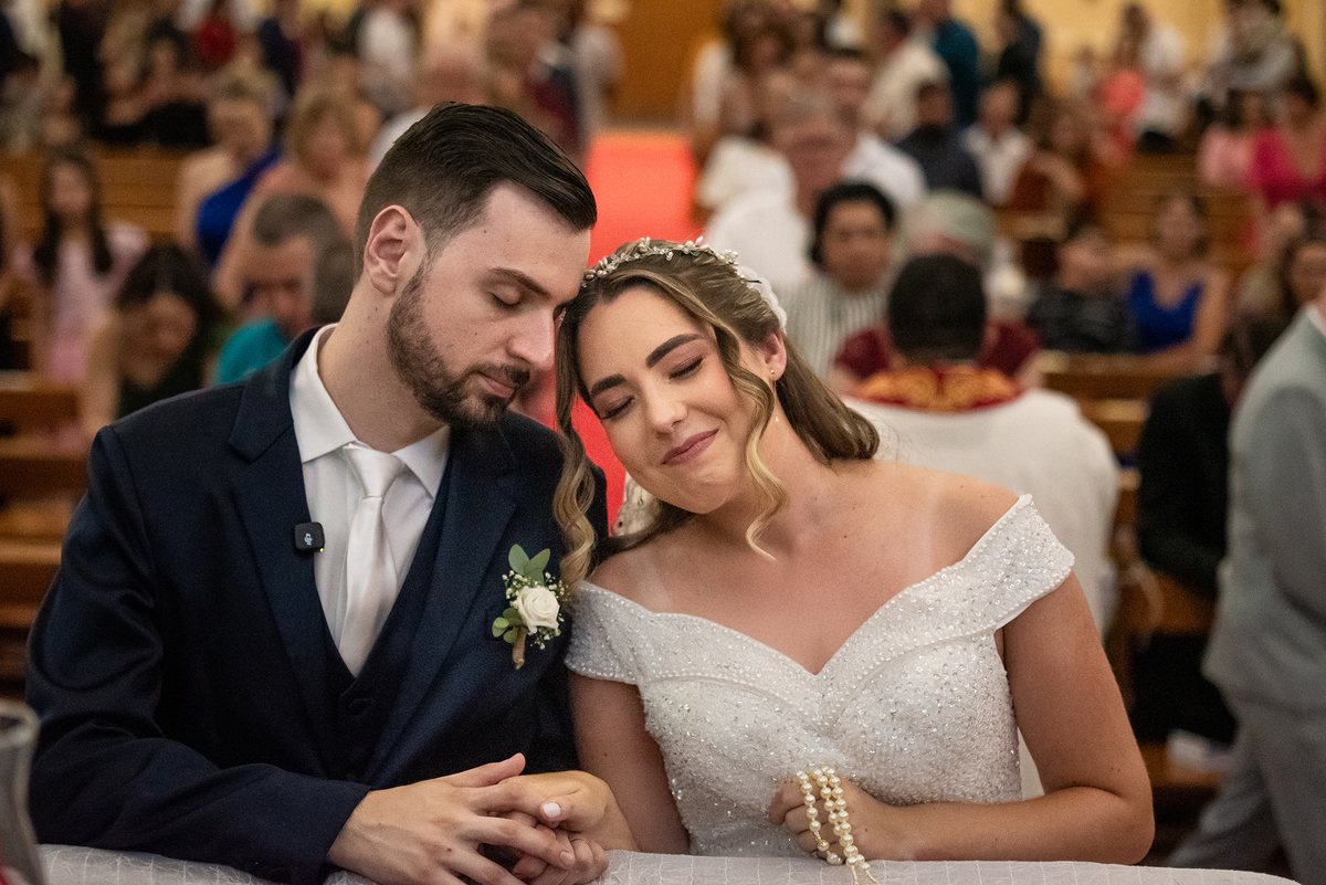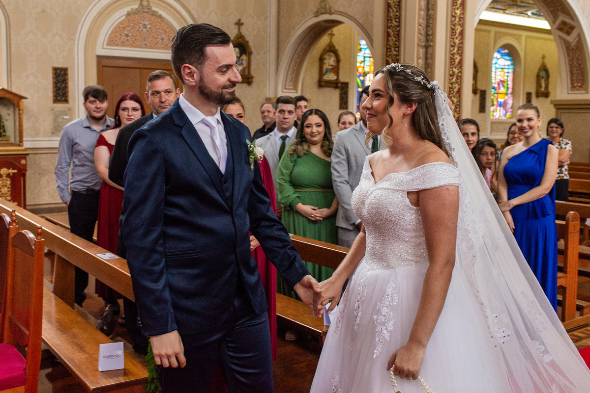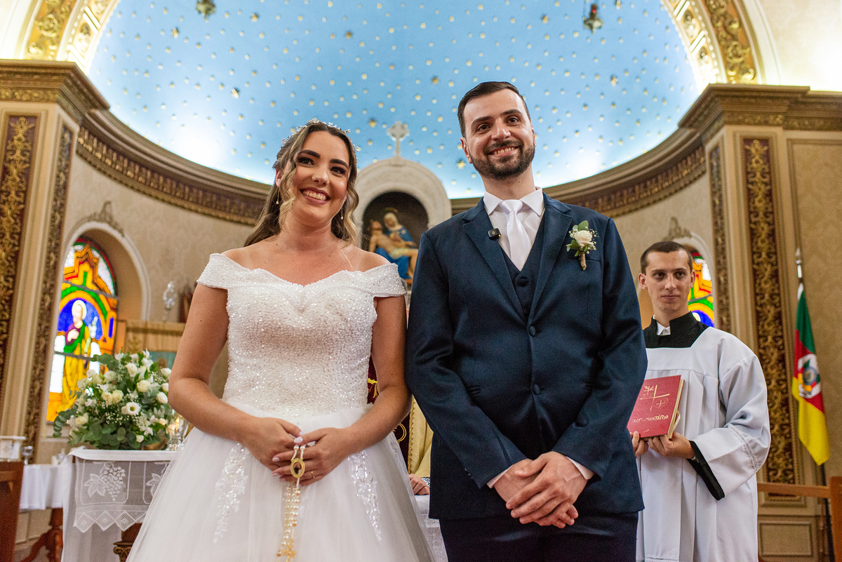 Um casamento na igreja sempre tem seu charme e valor, pelo grande simbololismo que o momento representa, o que fez muito sentido ao casal que se conheceu pelas paróquias da vida.