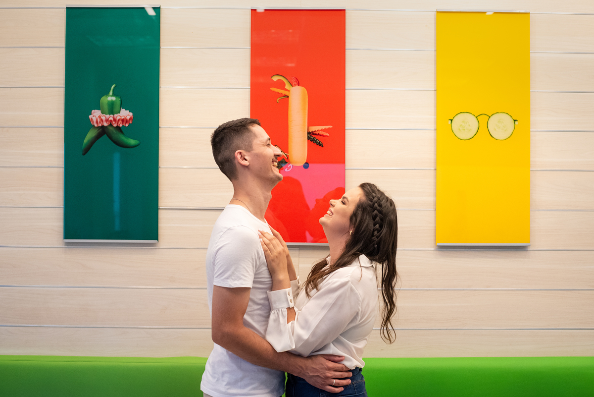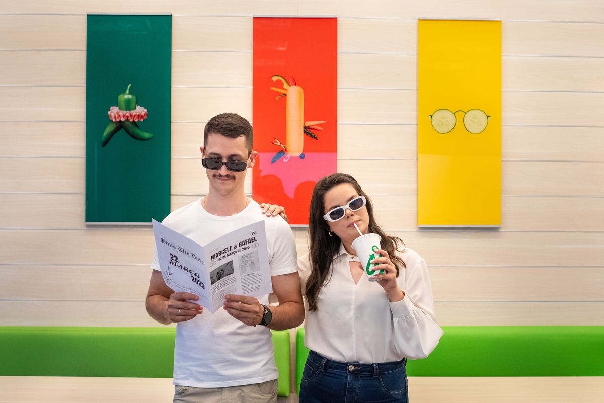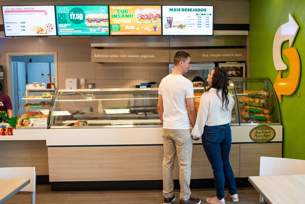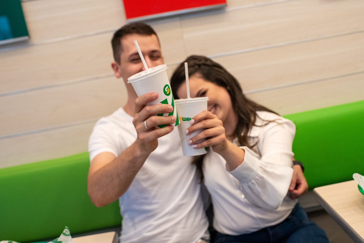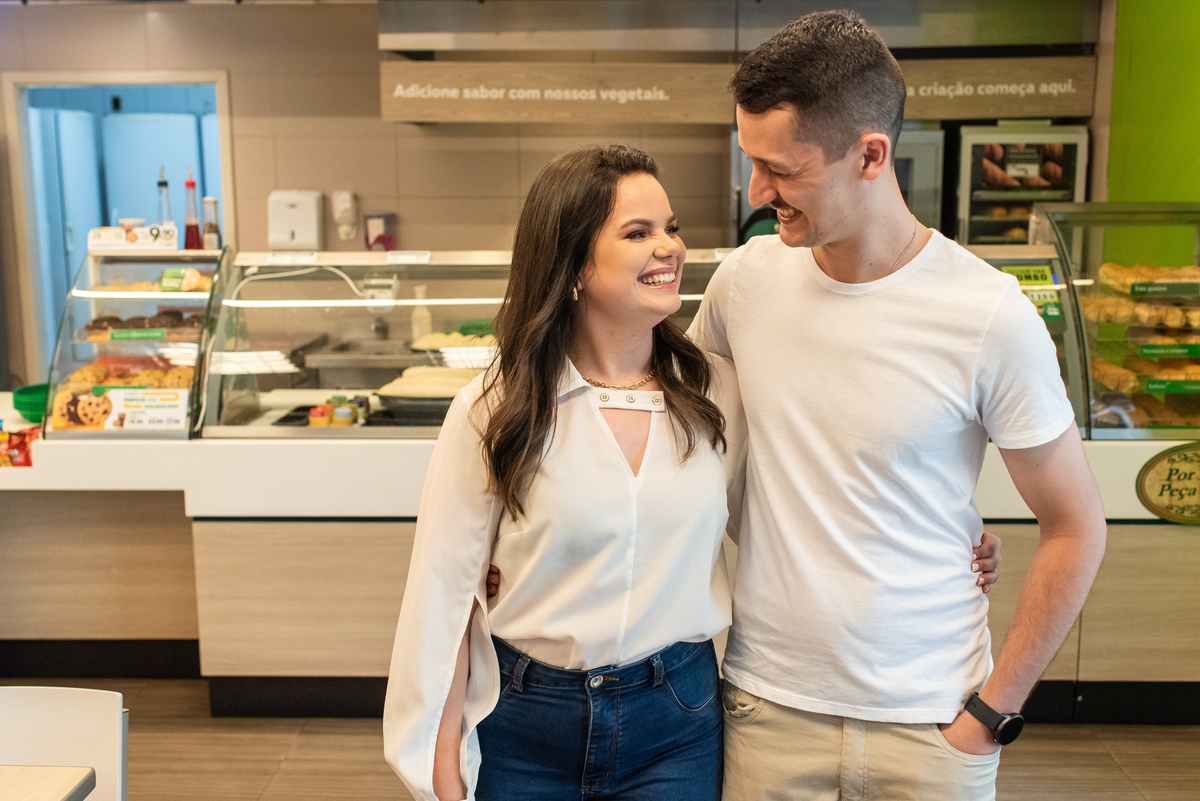 Iniciamos o ensaio no Subway de Novo Hamburgo, um lugar onde eles, como namorados e noivos foram muitas vezes e fez todo sentido para o ensaio pré casamento ficar ainda mais bonito.