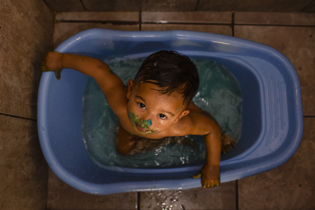 Para manter tudo certo fizemos uma bagunça em casa, no jardim, inventamos um "smash the cake" e nos divertimos muito. O resultado foi fantástico!